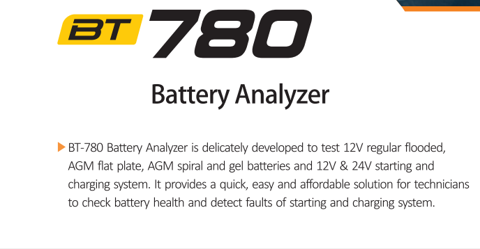 - Tests mutiple battery types-regular flooded,AGM flat plate, AGM spiral and gel, start-stop AGM and EFP batteries